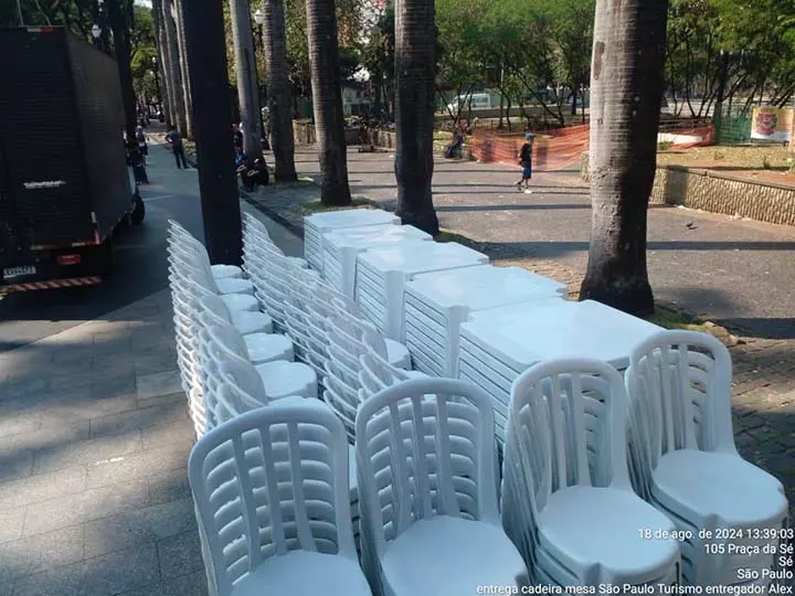 Trabalhamos com mesas e cadeiras plásticas brancas, resistentes, padronizadas e sempre higienizadas.